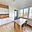 Kuchyně je vybavena digestoří, elektrickou troubou, myčkou, plynovou varnou deskou, lednicí a mikrovlnkou. Součástí kuchyně je i jídelní stůl.